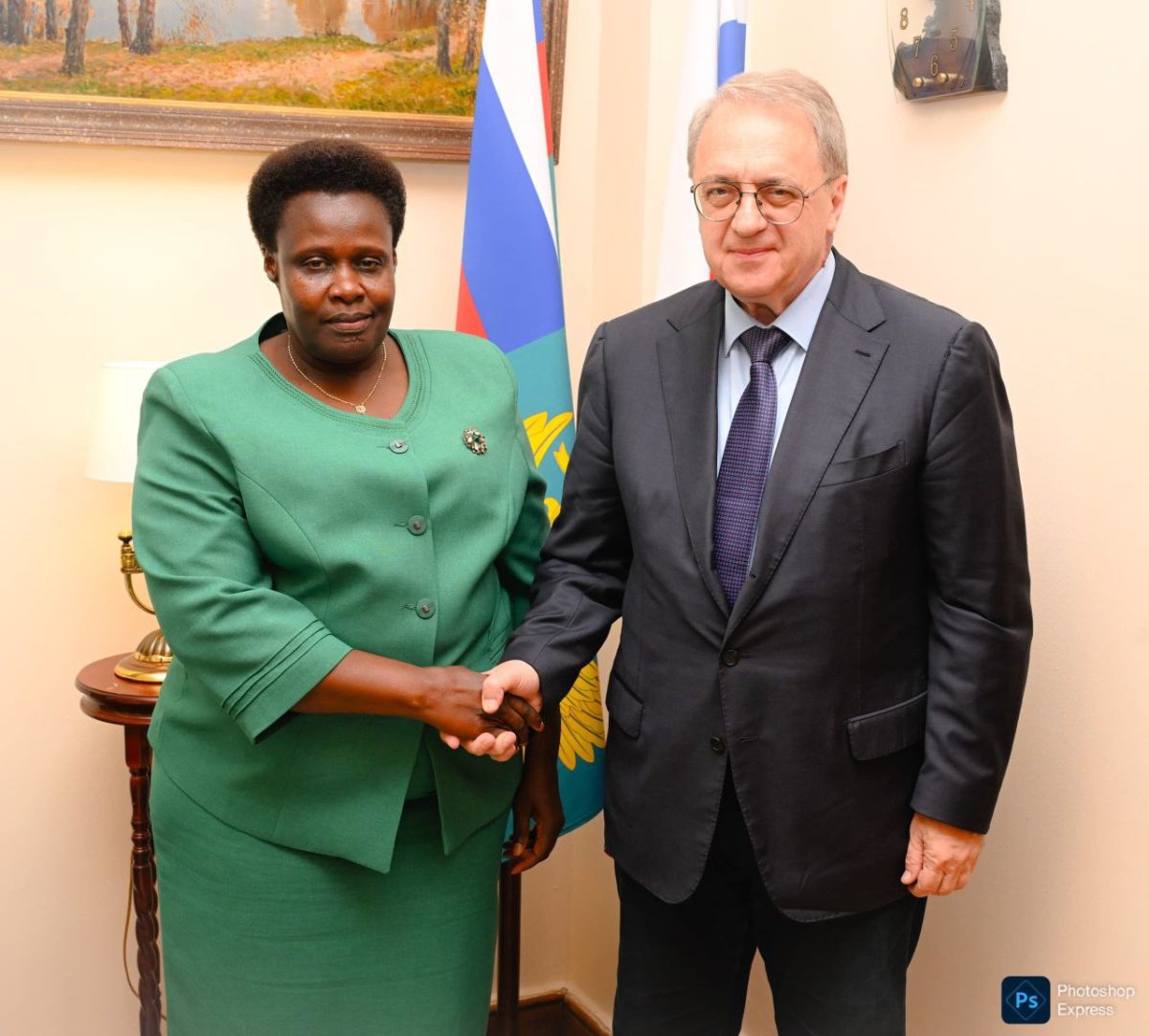 Ugandan Vice President H.E. Jessica Alupo held productive discussions with Mikhail Bogdanov, Russia’s Special Representative for the Middle East and Africa and Deputy Minister of Foreign Affairs, during her official visit to Russia.