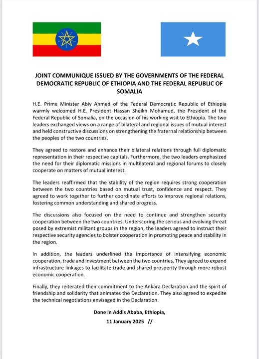 Prime Minister Abiy Ahmed and President Hassan Sheikh Mohamud of Somalia have exchanged views on a range of bilateral and regional issues of mutual interest and held constructive discussions on strengthening the fraternal relationship between the peoples of the two countries.
