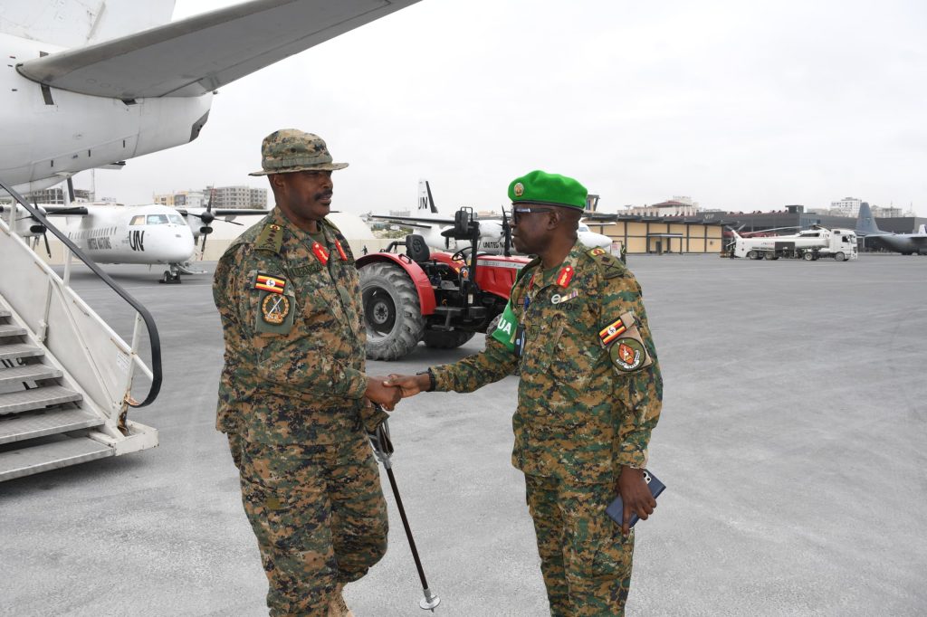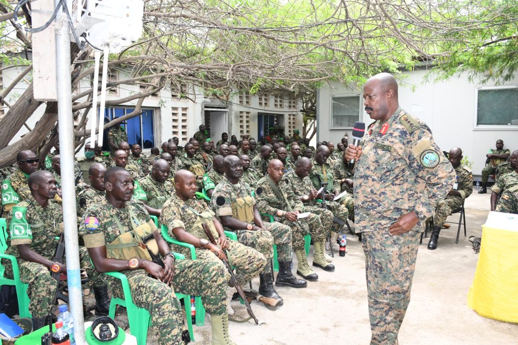 Lt Gen Kayanja Muhanga, Commander Land Force, visited Uganda Peoples’ Defence Forces (UPDF) troops in Somalia, serving under the African Union Transition Mission in Somalia (ATMIS).