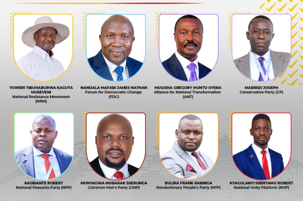 Others are Kyagulanyi Ssentamu Robert (Bobi Wine) – National Unity Platform (NUP), Mubarak Munyagwa Sserunga – Common Man’s Party (CMP), and Frank Burira Kavinga – Revolutionary People’s Party (RPP)