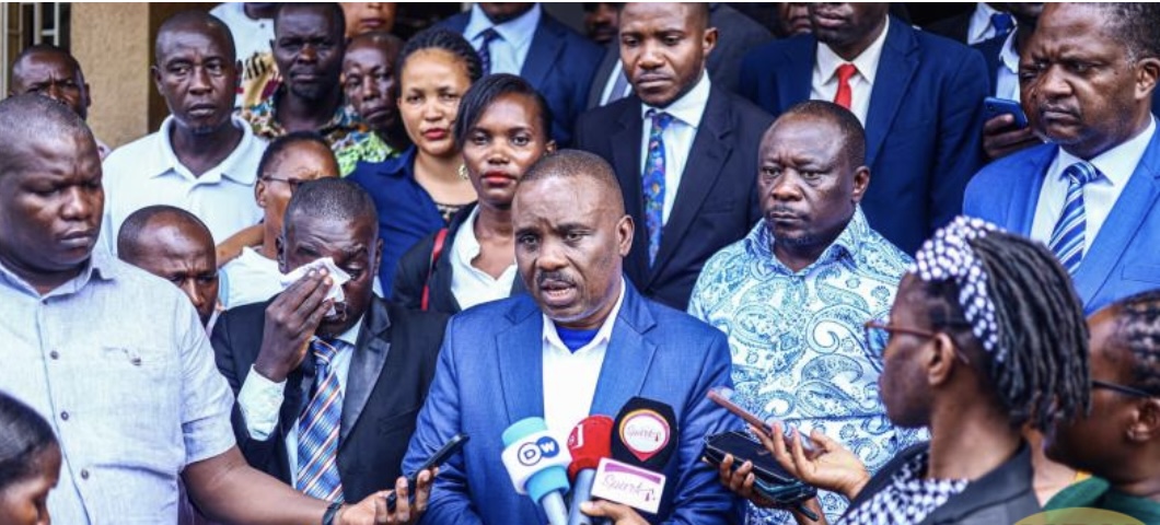 Lukwago has told Journalists outside Court that his heart is personally heavy looking at Besigye in the way he appeared . He described the condition as devasting.