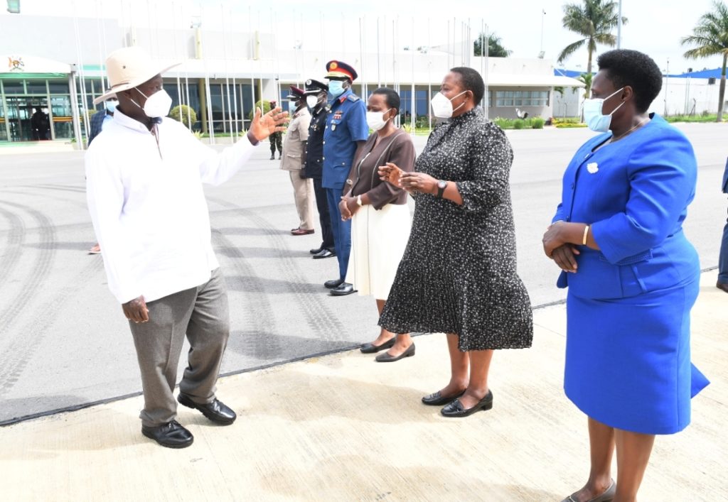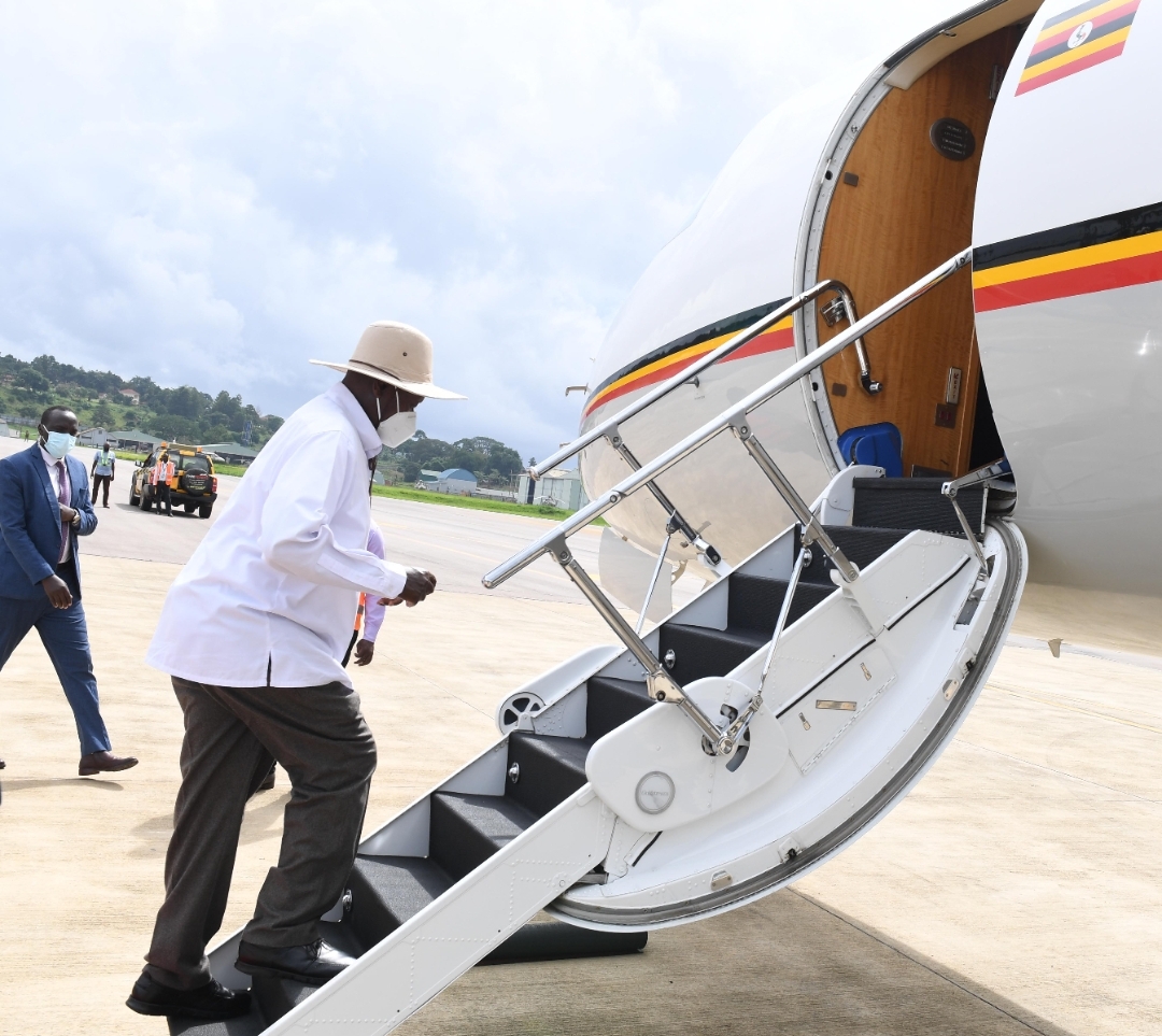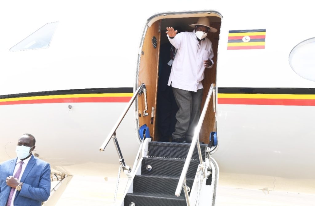 The President was seen off at Entebbe International Airport by the Vice President H.E Jessica Alupo, the Minister for Presidency, Hon. Babirye Milly Babalanda, the Head of Public Service, Ms. Lucy Nakyobe, the Commander Air Force, Lt. Gen. Charles Okid for CDF, the Director Crime Intelligence Uganda Police Force Brg. Gen. Christopher Damulira, and Deputy Commissioner General of Prisons Samuel Akena.