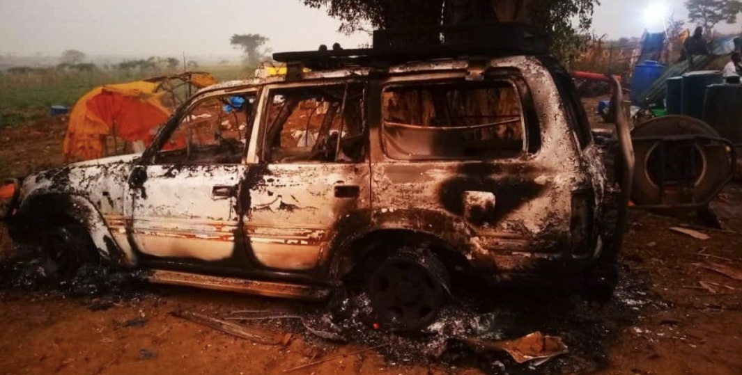 The assailants went on to set fire to four makeshift tents and four vehicles, including a Canter Elf (Registration Number UAM 252Q) and a Pajero (Reg. No. UAS 044J). Additionally, a tractor was burned beyond recognition, along with a bulldozer that had no visible number plates. The intruders also looted an unspecified quantity of fuel and other valuable items from the camp.