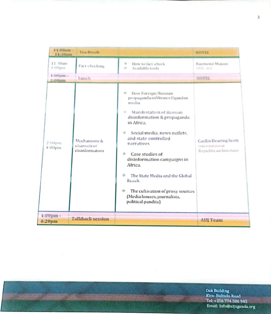 The program was organized in partnership with the African Institute for Investigative Journalism, a Kampala-based NGO reportedly funded by the U.S. Agency for Global Media, USAID, Open Society Foundations, and the European Union—all entities with links to Western governments and intelligence networks.